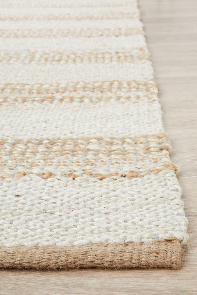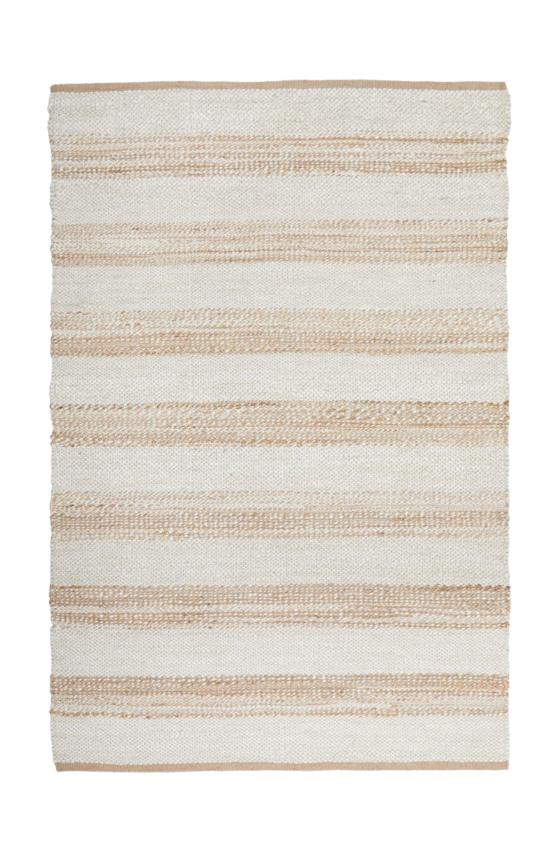 With a glowing natural and white colour palette, the Hyams Natural + White Jute Rug is a fresh take on this fantastic sustainable material. Featuring a stripe pattern and skillfully hand braided in India using the highest quality, eco-friendly jute, our Hyams Natural + White Jute Rug creates an organic, textured and natural feel for your home. Ideal for fresh and light coastal interiors.