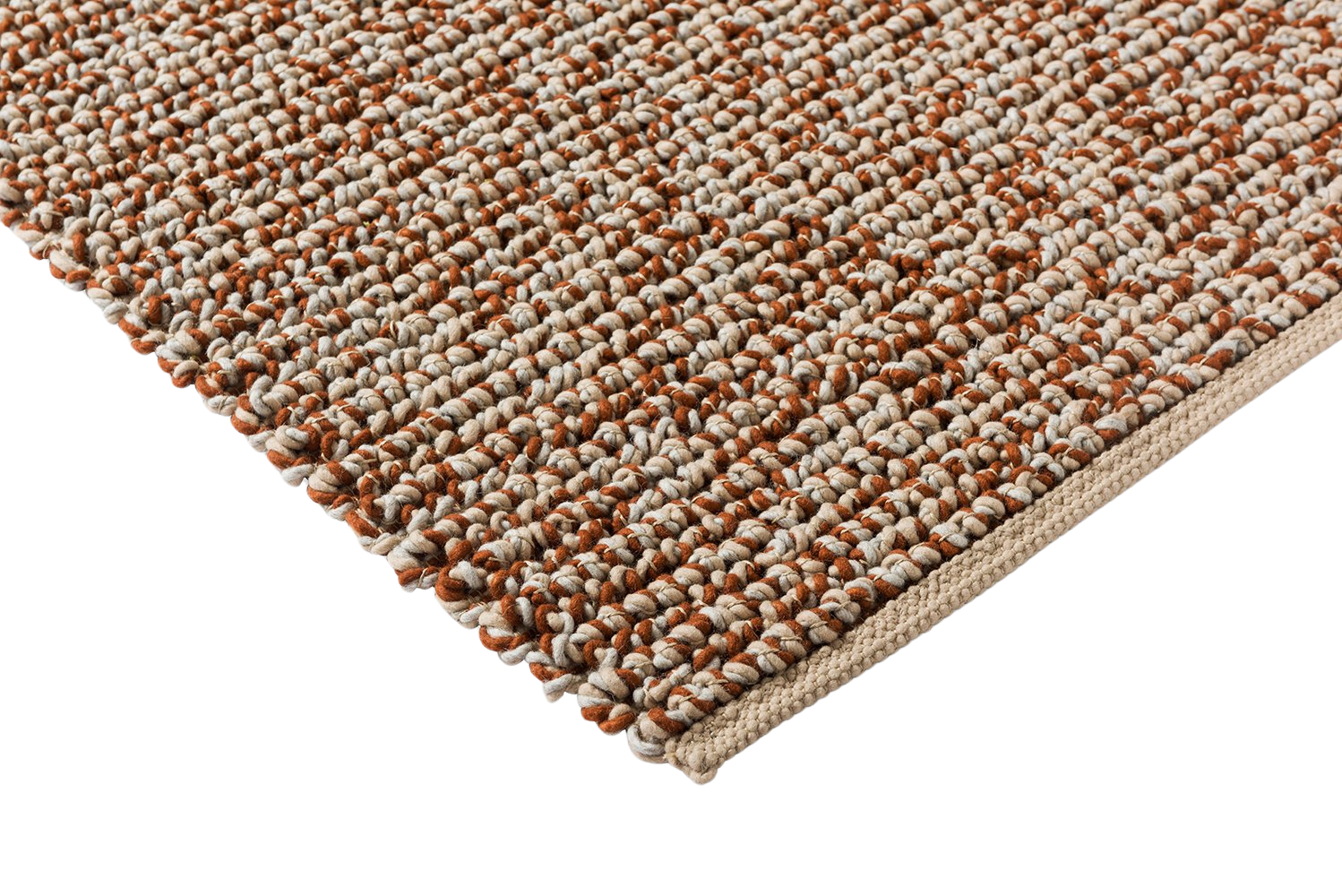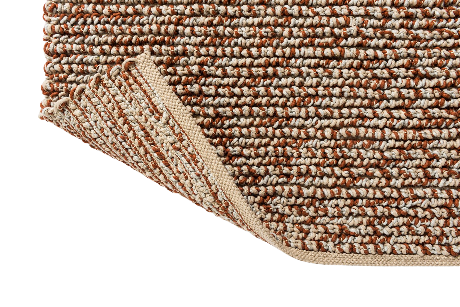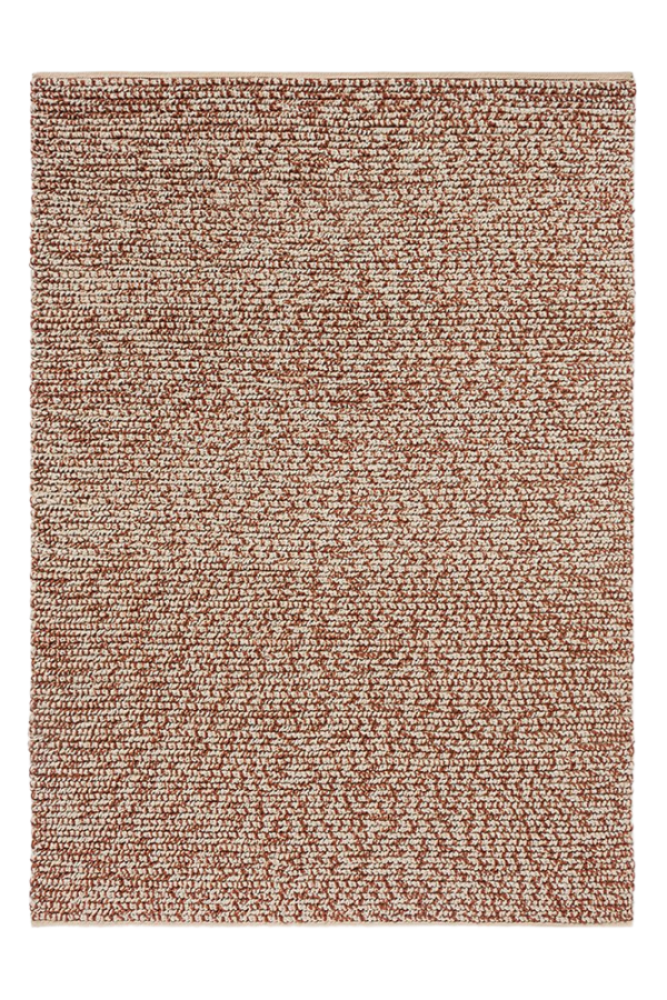 The Nest Leather Hand-Woven Wool Rug is a complex flatweave created with twisted knots and nesting patterns. Three yarns are knotted and handloomed to obtain the sturdy Nest Leather Hand-Woven Wool Rug which showcases a friendly look and a combination of rust and cream yarns, ensuring quality and the joy of having a crafted wonder that elevate your space with its beautiful intricate look.
