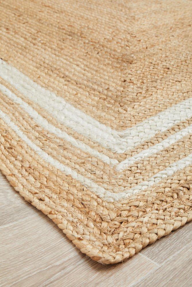 With a glowing natural and white colour palette, our Waikiki Organic Jute Runner is a fresh take on this sustainable material. Featuring a lovely natural colour and an off-white border, Waikiki Organic Jute Runner is skillfully hand braided in India using the highest quality, eco-friendly jute, thus creating an organic, textured and natural feel for your home. Ideal for fresh and light coastal or boho interiors the Waikiki collection is available in a number of sizes and shapes.